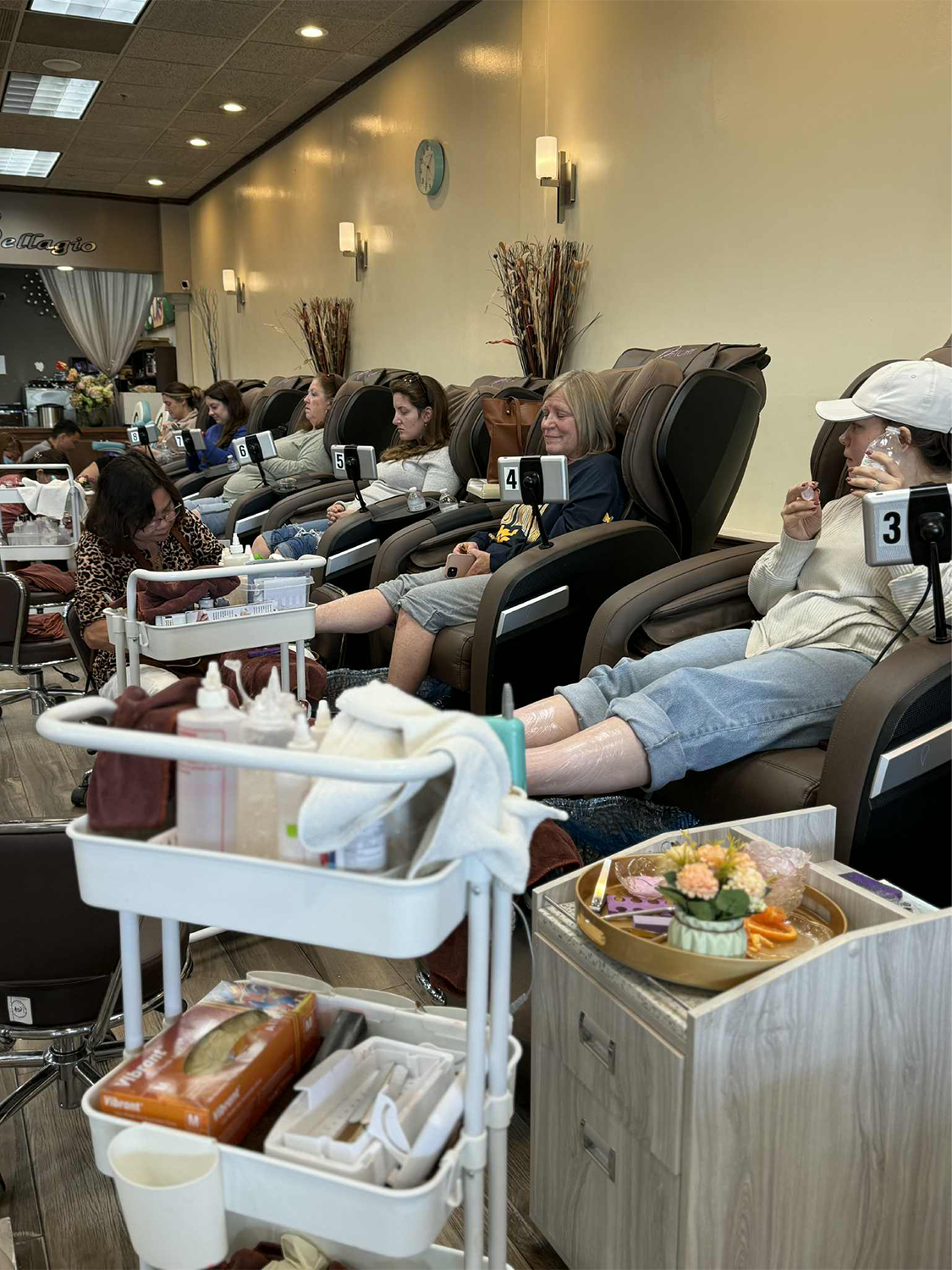 Bellagio Salon & Nail Spa is typically a high-end beauty salon offering a variety of personal care and grooming services. These services often include haircuts, styling, coloring, nail treatments (like manicures, pedicures, and nail enhancements), skincare treatments (such as facials), waxing, and sometimes additional spa services like massages or body treatments.
