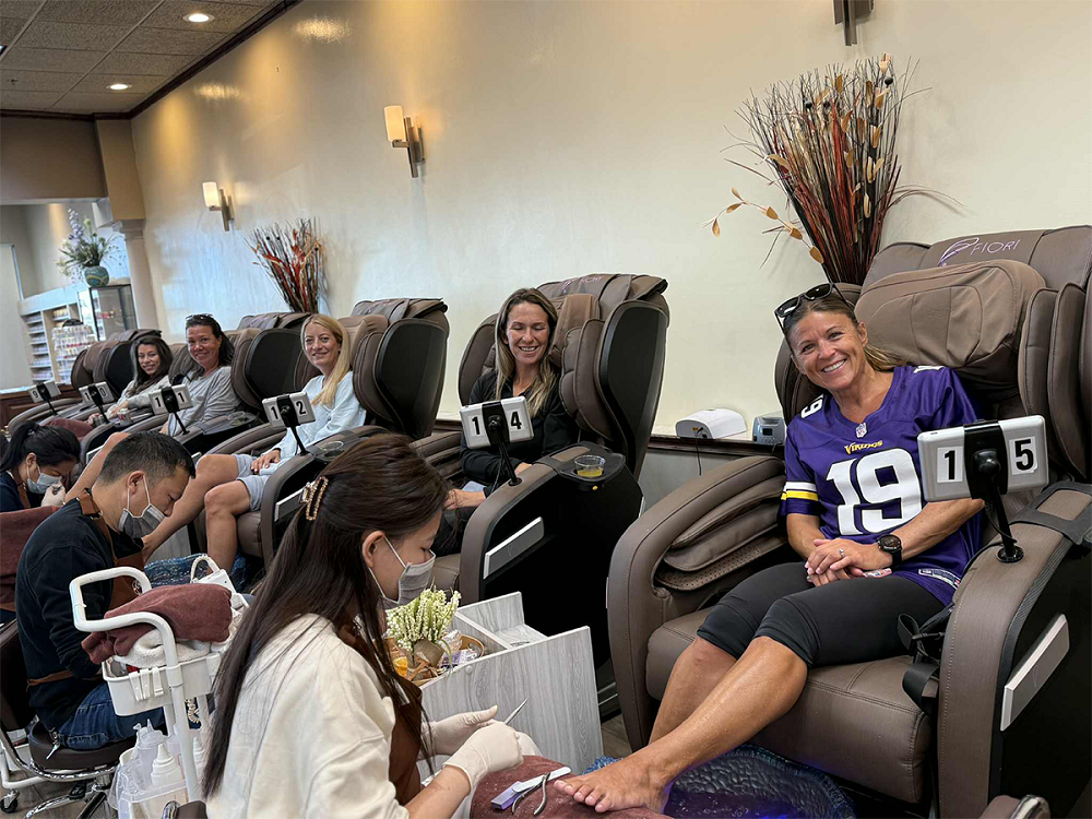 One of our best pedicures and it will surely leave you happier than our Luxury Pedicure. This includes soaking your feet in milk, followed by nail and cuticle care with callus treatment. Also includes citrus sugar scrub, a cooling gel massage and a warm soothing mask wrap with a soothing paraffin dip that recovers all your cracks and dry skin. Last but not least, a hot stone massage helps circulate your blood flow from your feet to the rest to your body and relieve tension: